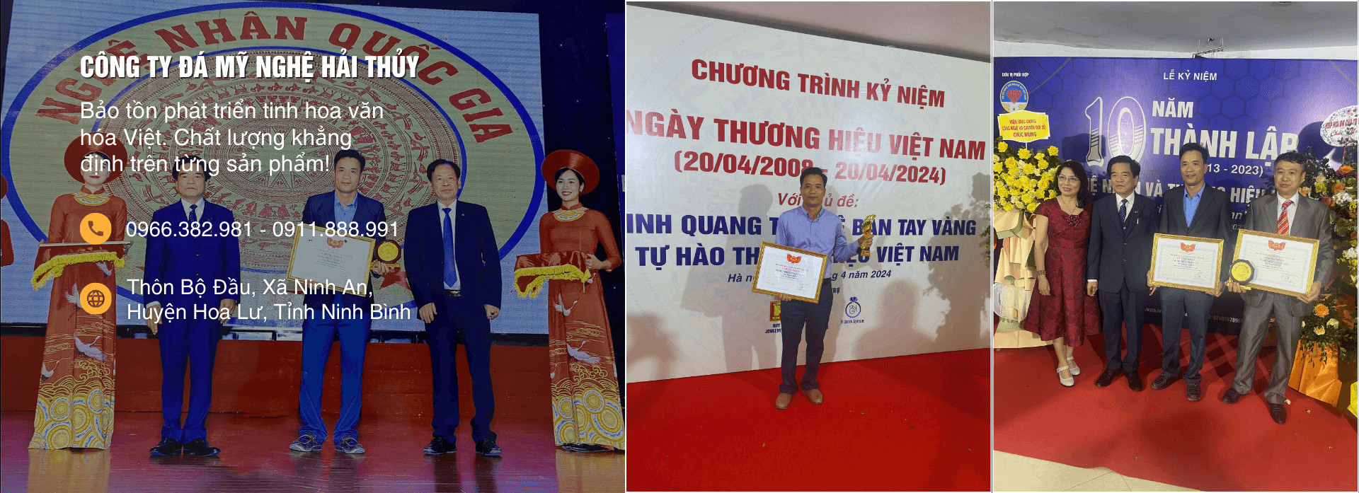 Hơn 15 năm xây dựng và phát triển tại làng đá Ninh An Ninh Bình, Công Ty Đá Mỹ Nghệ Hải Thủy là công ty uy tín hàng đầu trong lĩnh vực “THIẾT KẾ – THI CÔNG” Đá mỹ nghệ. Chúng tôi liên sáng tạo cũng như cập nhật những phong cách mới lạ để tạo ra những thiết kế đẳng cấp đến với khách hàng.
